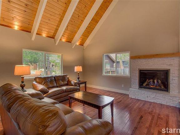Hideaway at home in a master bedroom where you will have privacy until you are ready to face the day. This home offers a master bedroom that is fully equipped with a kitchen, living area, bathroom, private deck looking out to government land and separate entry. This elegant home has been transformed in the ultimate Tahoe cabin. Granite counters, alder cabinets, hickory hardwood floors, mood lighting and new windows are just some of the features you will find here. The home features four bedrooms, two and one half baths, soaring wood ceilings, top of the line appliances and an entertainers dream kitchen with enough room to seat 20 for dinner. This special home comes with a one year home warranty of buyers choice even though the appliances, furnace, water heater and refrigerator are all new.