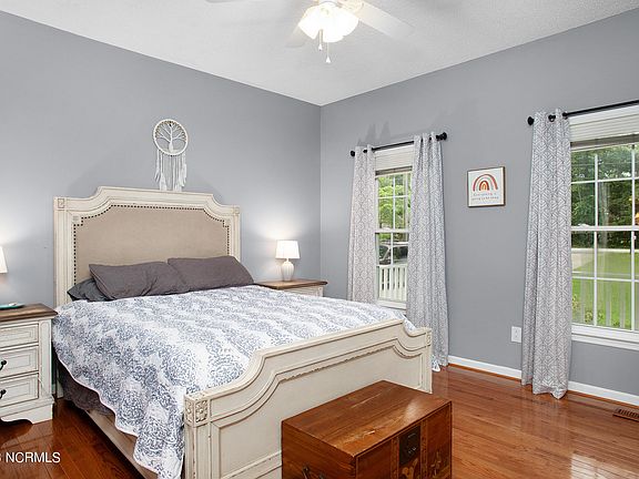 Welcome to your dream home in the highly sought-after River Trace neighborhood! This stunning 3-bedroom, 2.5-bathroom residence offers the perfect blend of modern comforts and classic charm. Upon arrival, you'll be greeted by a spacious and inviting front porch, the ideal spot to enjoy your morning coffee. Step inside, and you'll be enamored by the beautiful oak floors that grace every room, creating a warm and welcoming atmosphere throughout. The heart of the home is the living room, featuring a brick, gas log fireplace, perfect for cozy evenings at home. Adjacent to the living room, the kitchen boasts stainless steel appliances, granite countertops, and an eat-in dining area, making meal preparation and entertaining a breeze. Escape to the luxurious owner's suite on the main floor, offering the utmost privacy and convenience. You'll love the en-suite bathroom, complete with dual vanity sinks, a jetted tub, and a walk-in shower. Upstairs, you'll find two guest bedrooms and a full bathroom, ensuring ample space for everyone. Additionally, there's a bonus room that presents endless possibilities - whether you need a home office, gym, or extra guest space, this room has you covered. Outside, you'll discover a vast deck, perfect for hosting barbecues and creating cherished memories with loved ones. The huge fenced-in backyard offers the ideal setting for pets to roam freely. Plus, a convenient shed provides additional storage for all your outdoor equipment and tools. Situated just a short drive away from Historic Downtown New Bern, you'll have easy access to a wealth of charming shops, restaurants, and cultural attractions. Not to mention, the close proximity to Carolina East Medical Center offers peace of mind for your family's healthcare needs. Don't miss this incredible opportunity to own a home in the desirable River Trace neighborhood. Call us today and Schedule a private tour and make this slice of heaven your own!