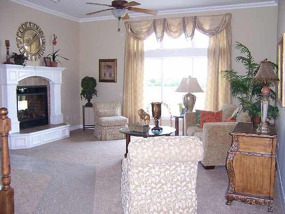 YES, a picture perfect view from every main room window! Elegant home with see thru fireplace, roomy master suite, formal dining, hearthroom, walkout bsmt. All custom window coverings stay. All items deemed reliable but not guaranteed.