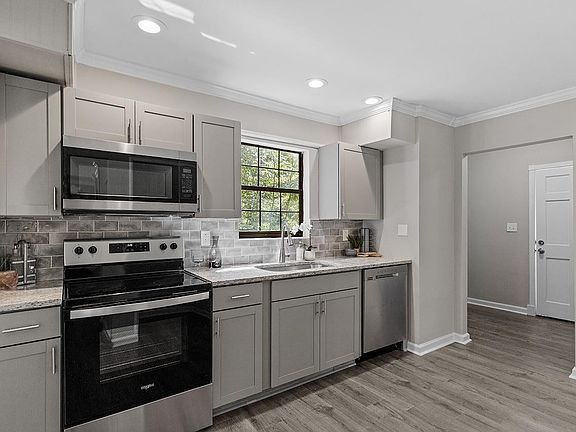 Charming Home with stunning wrap around porch on .93 acre lot. Features wide plank laminate hardwood flooring, custom kitchen with new shaker cabinets, granite countertops, glass tile backsplash and Stainless Steel appliances. Primary with dual vanity, & HUGE WIC. New roof and water heater 2023. Move in and Enjoy!