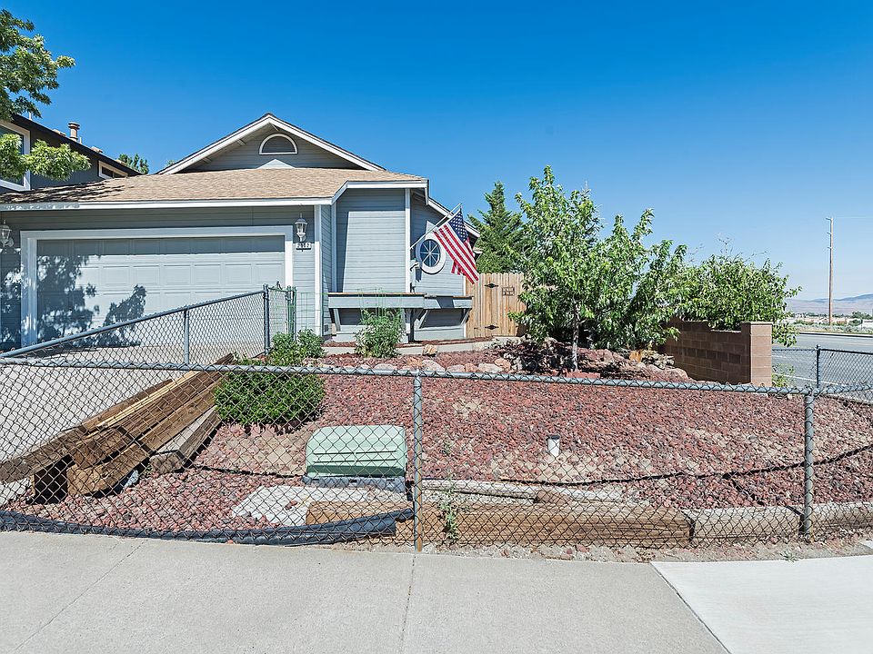 Charming single-story home in Northwest Reno on the corner lot of a quiet cul-de-sac. This wonderful home features an open layout with beautiful mountain views and newly installed luxury vinyl plank flooring throughout. With an additional 168 square foot sunroom that has its own heating and cooling system to relax in and enjoy all year round. The low maintenance backyard is shaded with mature landscaping and comes with a large 10x12 shed for more storage.