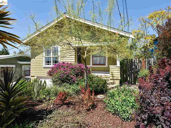 A gardener's paradise! This lovely 1915 bungalow is as sweet as it gets. Situated in the Dimond District, it has a happy street presence with a lushly landscaped front yard and a mosaic-tile porch. Upon entering, there is a high, vaulted ceiling that gives a spacious, open feel. The living room is large and bright, and flows easily into the dining room. All windows have big, tree-filled outlooks. The kitchen has granite counters, stainless appliances and a greenhouse window over the sink. Behind the kitchen is a light-filled master bedroom, with large windows on two sides framing fabulous views of the back garden and the Oakland Hills. This room feels as though it's in the trees, it's so nicely situated. The back door leads down to a spectacular yard, perfectly designed with seating areas, grass, garden spaces, chicken coup, colorful & mature landscaping. The basement provides storage and a laundry room. Easy commute and just a few blocks to the delights of the Dimond shops.
