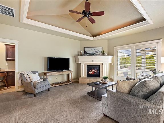 Exquisite custom-built home located in NE Meridian. This single-owner gem boasts high-end finishes and upgrades, showcasing meticulous attention to detail. From plantation blinds to crown molding, wainscot and arched entryways, every corner exudes sophistication. The spacious great room with its striking gas fireplace and vaulted ceiling welcomes gatherings bathed in natural light. The kitchen is a dream with granite countertops, stainless steel appliances and a convenient cookbook storage nook. Stay organized with the built-in office nook featuring a granite desk and cabinetry. The extra-large laundry room offers ample storage along with a refrigerator and sink. Step outside to the north-facing backyard with a large covered patio, ideal for outdoor entertaining. A 12x10 storage shed with electricity matches the home's exterior and provides versatile storage or a hobby space. You're sure to love the garage equipped with epoxy floors, full-length cabinetry and a work area!