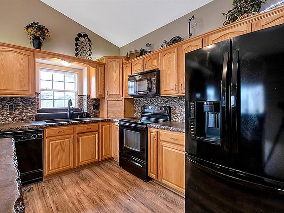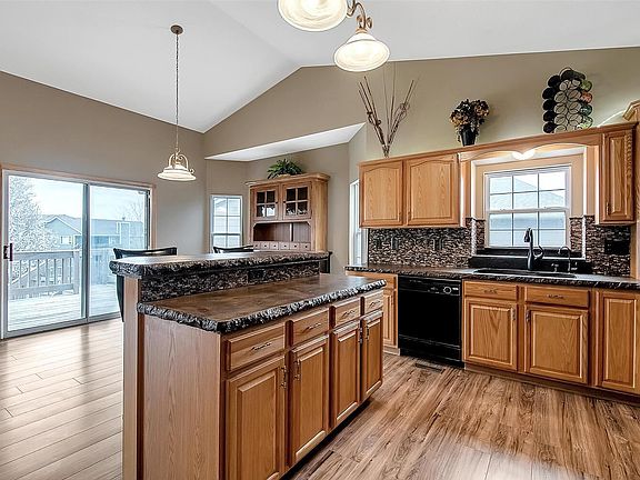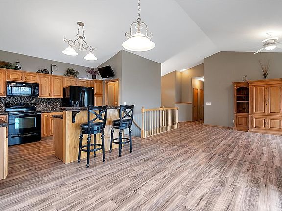 5 bedroom, 3 bath, 3 car ( Drive-Thru ) Garage, Walk- Out Basement, Concrete Counter tops in the Kitchen and Main living area window sills and box out windows. Granite Counter tops in the Main floor bathrooms, Master Bathroom includes 2 Sept Vanities , Corner Jetted Tub, Corner Tile shower with seat and Dual Shower heads, Walk-in Closet. Ceilings throughout home are 9' and Vaulted in the Main living area. Wood Burning Fireplace in the basement Family Room with Gas Starter, Dry Bar and a HUGE Storage Room. Irrigation Well w/ New Pump, Sprinklers, Storage Shed, Mature Trees and Privacy Fenced Yard. Home also Features Concrete Siding, Covered Back Deck, 4th Car Parking which continues along the side of the garage. Newer High Efficiency HVAC! Seller is a Licensed Realtor in the State of Kansas. No Specials! Must See!!