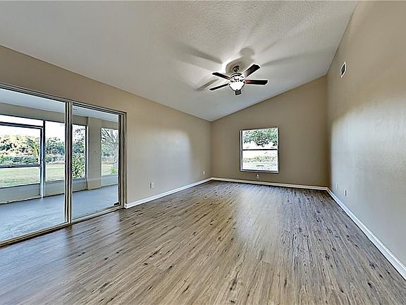 VACANT! New roof pending. Screened in patio in the backyard. New interior paint, new luxury vinyl plank flooring throughout all main areas and wet areas including the laundry room. New carpet in all bedrooms. Split floor plan, vaulted ceilings, foyer to front family room, separate dining room. Kitchen open to eating area, and has new stainless appliances, new decorative fluorescent light, window overlooking patio and backyard, and breakfast bar. Rear living room sliders to patio, master bedroom bay windows and large walk in closet, master bath soaker tub and dual sinks, spare bedrooms have new lighting.