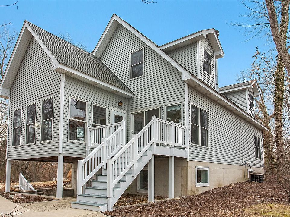 Magnificient sunsets over Lake Michigan await you from home atop a dune. Great room with fireplace (TV stays), bamboo floors thoughout the first floor. Lakeside deck opens to paneled sunroom. Main floor master bedroom plus two large upstairs bedrooms. Lower level rec room all freshly painted and ready for summer. Generous parking space and room for a garage.