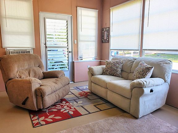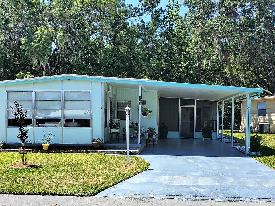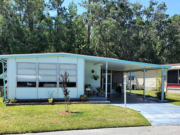 Moving! Must Sell! UNFURNISHED! This is what you've been looking for! A gorgeous home in the beautiful age qualified community of Clover Leaf Farms that needs nothing but a new owner! The vinyl roof over was replaced in 2021 and extended to cover the sunroom for much greater comfort and usage. The HVAC was replaced in 2018. This home features all plywood subfloors and lovely flooring throughout. The sunroom is located on the front of the home and has glass windows, new insulated roof over and a small window AC making it usable living space like the rest of the home! There is a nice screened in porch at the carport and attached shed with laundry accessed through this area. The home backs up to a wooded area for more privacy and scenery. Everything in this home is beautifully maintained. If you are looking for a great home that is move in ready....don't let this one get away. Call for a showing today!