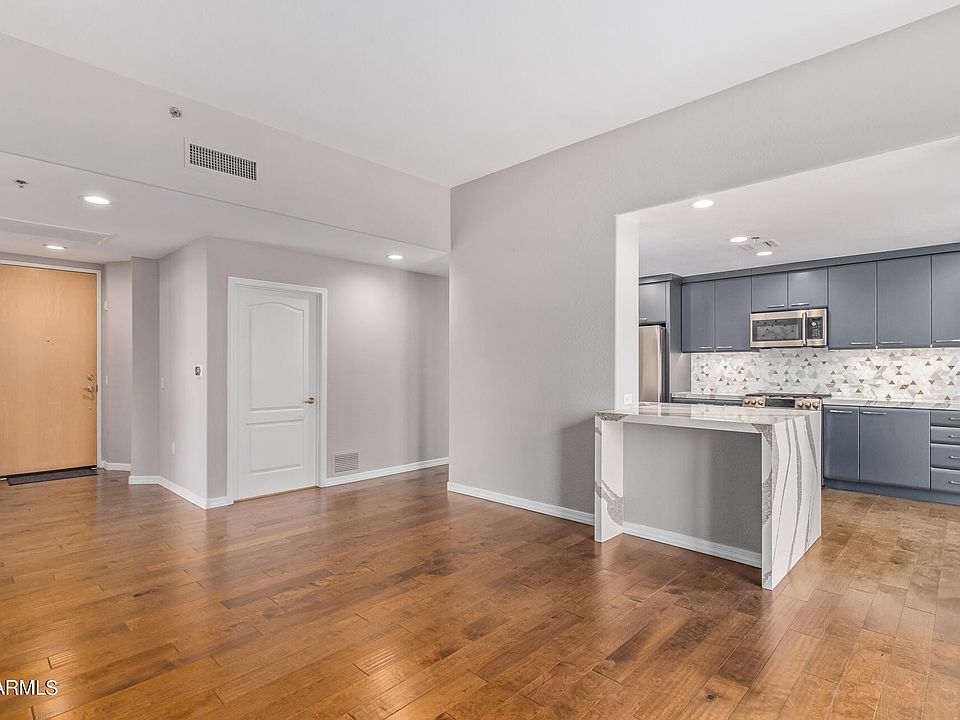 SELLER IS OFFERING RATE BUY DOWN....Stunning luxury condo living in Midtown Phoenix at Tapestry on Central. This highly upgraded corner unit condo was completely remodeled in 2022 & has fantastic city views. Gourmet kitchen features high-end cabinets, beautiful quartz countertops, tiled backsplash, breakfast bar & new stainless-steel appliances. Primary bedroom suite has an amazing large walk-in closet, spacious shower & double sink vanity. The 2nd bedroom with great views & the 2nd bathroom also has multiple luxury upgrades. Roomy office/den could be a 3rd bedroom. Relaxing living room with a gas fireplace to entertain with family & friends. Large laundry room with storage space. Open bright floor plan with high ceiling, engineered scraped floor through-out & interior was painted in 2022,