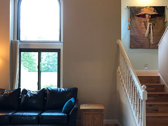 Light, bright, open home with great views of the Northpointe Lake. No backyard neighbors. Four bedrooms, three full baths, two-car garage. Main Floor has laundry, full bath, and guest bedroom. Nicely fenced outside area for pets. Updates since 2015 include: solid oak hardwood flooring in living room, dining room four bedrooms, stairs, and hallways; ceramic tile floors in kitchen, laundry, main floor bath; updated main floor bath; quartz countertop in kitchen; new vanity and quartz countertop in master bath; gas fireplace insert; two new Andersen sliding doors; six new Andersen windows. Enjoy plenty of privacy on your deck or upstairs balcony.