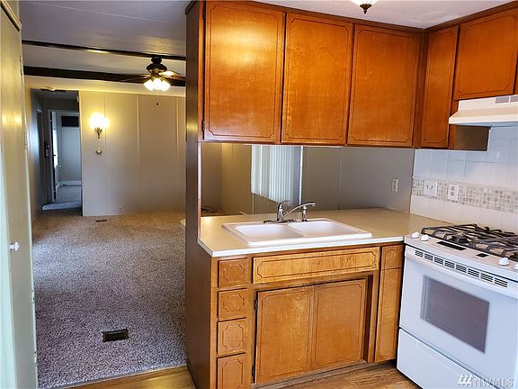 Bring offer! Cute & Cozy 1 bed/1 bath with a 16' x 8' finished bonus/laundry room in 55+ Leisure Manor in Auburn. Newly coated roof, gas furnace, gas H2O heater and gas stove! Newly renovated bathroom with new shower. AC wall unit in large bedroom. Full size appliances. Vaulted Ceiling in family room with ceiling fan. Shed with power & lights under carport for extra storage. Extra finished room with washer/dryer has separate entrance out to the front porch...den, office, craft room, guest room?