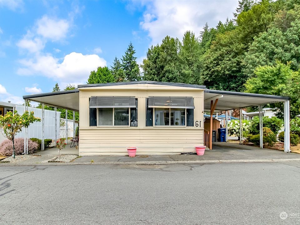 Great remodel on this home! Conveniently located in Leisure Manor, a 55+ mobile home park, this home has excellent closet space, a large primary bedroom, a patio with hot tub (only 2 years old) and lots of important upgrades including a newer roof, new plumbing throughout, remodeled kitchen and bath with tile shower. The lot has a nice yard with blueberry bushes and landscaping. Park features pool, dog park, RV parking/Storage and activities space and community garden space. Window AC stays. You'll love this home! Lot rent of $935 currently with utilities added totaling approx $1088/mo. Financing options are available.
