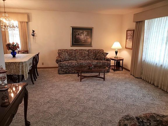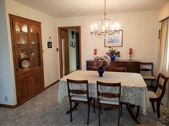 3 BR 1.75 BA home featuring awesome garage! 33 x 22.5 garage with in-floor heat, HALF BATH, private workshop area, work sink, A/C unit and cabinetry included. Kitchen filled with Custom Oak cabinetry, appliances included. Formal dining area with beautiful built-in hutch. Bedrooms with custom desks & built-ins. Entire lower level is finished with a huge rec room, guest room with double closets, desk, and pantry. 3/4 bath. Second guest room with double closets and desk. Awesome lower level laundry room, appliances included. Many updates inside and out. Big yard with playhouse/storage shed and filled with trees for privacy.