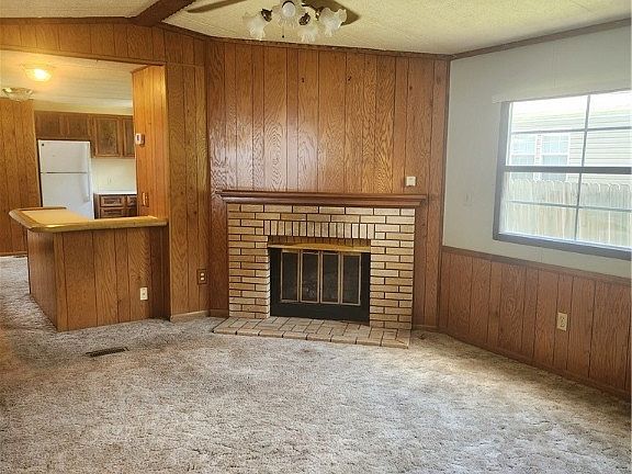 Charming, manufactured home in South Chesterfield on a permanent foundation. This home features two bedrooms, two bathrooms,924 sq feet with plenty of storage. The primary bedroom has a large closet and ensuite with a walk-in shower and sunken bathtub. The second bedroom has a large closet and full bathroom with a walk-in shower. Open floorplan family room has fireplace and opens up to the spacious kitchen that features beautiful wood cabinets, refrigerator and electric stove. Home has had great rental history. All of this and a fenced yard for the children to play. Home is sold AS-Is. Washer, dryer, refrigerator, fireplace and 2 storage sheds convey as is