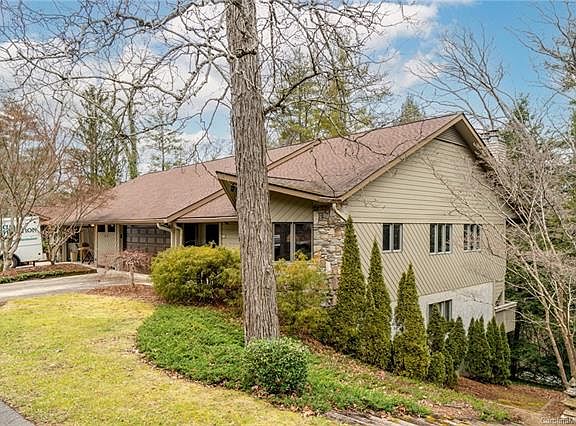 Contemporary unit in the desirable Timber Condos, a gated community with pool and clubhouse and just minutes from downtown Asheville. Surrounded by an abundance of greenery, this condo is tucked away at the end of a cul-de-sac for extra peace and tranquility. Step inside to a beautiful open floor plan with vaulted ceilings, half bath off of the entry hall, spacious kitchen with breakfast nook, pantry, walnut cabinets and built-ins for wine and bread storage. The huge master bedroom on the main level has its own entrance to the sunroom with curved glass and beautiful wooded views. The long walk-in closet leads through to extra access to the master bath. The master bath boasts double sinks, plenty of cabinet space, soaking tub and separate shower stall. The living room with fireplace also provides access to the enclosed patio with walls of glass extending the scenic greenery. Finished space in basement includes 2 more bedrooms, a bathroom, family room, another fireplace and wet bar.