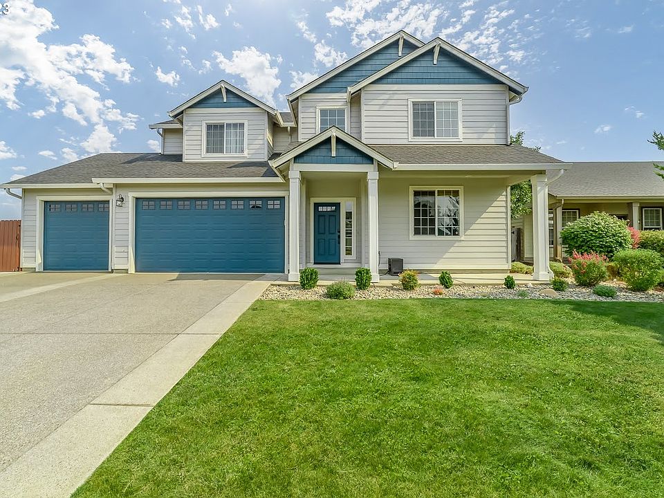 Better than new home with 5 BEDROOMS, 3 FULL BATHS & 3 CAR GARAGE. Amazing separation of space in this floor plan with the primary suite and another bedroom on the main floor. TONS of recent updates with newer interior and exterior paint, luxury vinyl plank flooring and solid core hemlock doors & trim. Primary suite has Oregon solid white oak hardwood floors, walk-in closet, double sinks, quartz counters and a gorgeous marble walk-in shower. Kitchen offers granite counters, pantry, gas stove and stainless steel appliances. Upstairs has 3 more bedrooms, a full bathroom and large family room. The backyard is perfect for entertaining year round with a covered patio and a stamp concrete patio with fire pit, lighting and built-in benches. Front & back sprinklers.