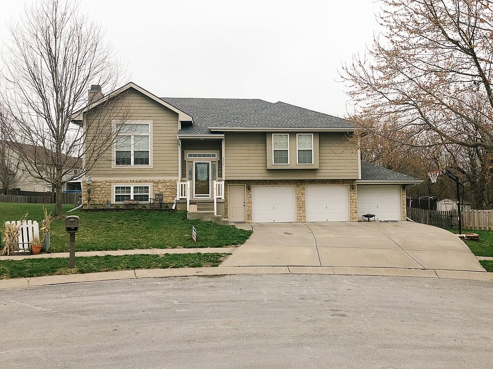 FSBO Message me Directly to schedule a viewing! Text or call 816-726-9130 Quiet Cul de sac and an oasis in the backyard! Interest rates are really low right now! Great time to buy! 4 bedrooms, 3 full baths, office space, playroom, full living room down stairs, all new interior paint, new roof in October, huge back yard, pool with large deck, playhouse in back yard, shed, small cul de sac with amazing neighbors, near schools, walking trail approximately 2,600 sq ft.