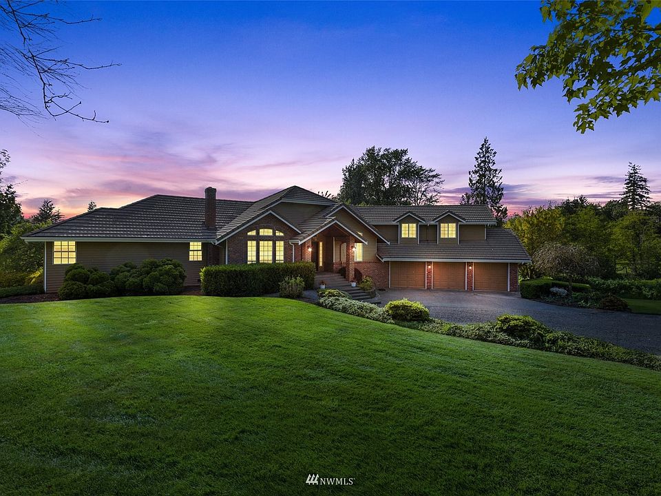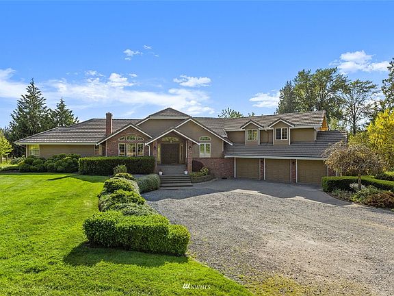 Spectacular home w/main floor living & 3-car garage on 5 level acres! The main floor features living, dining & family rooms, ½ bath, primary suite w/walk-in closet, full bath & a private deck, & kitchen w/cherry cabinets, SS appliances, walk-in pantry & French doors to deck overlooking the beautiful yard. Downstairs offers 3 bedrooms + flex room, full bath, ¾ bath & laundry room w/sink & cabinets. Huge bonus room upstairs! Home features vaulted ceilings, new carpet/paint, refinished hardwoods, newer exterior paint/trim/gutters/fascia/furnace/water heater & lifetime concrete tile roof. The property boasts sports court, room for shop, access to equestrian/walking trails & lake w/fishing!