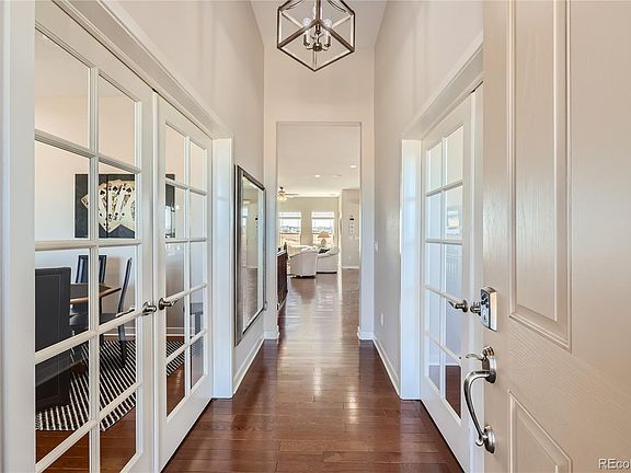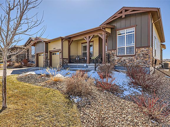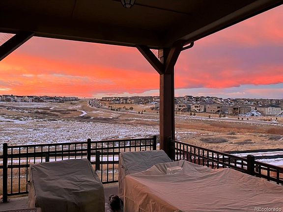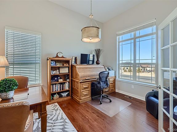 Enjoy views and incredible sunsets from this Trelease Ranch plan, by Toll Brothers. Located in the prominent 55+ Community of Inspiration, you'll be wowed by stunning views of open space in the front and back of the home. The residence has an abundance of natural light, an open floor plan, and gorgeous hardwood floors. In addition, a fresh kitchen awaits you, complete with stainless appliances, slab quartz countertops, new backsplash, and light fixtures. The open great room, with a beautiful stone gas fireplace, is the perfect place to relax or entertain. An office and a gaming room complete the main floor, allowing for great flexibility within the space for an extra bedroom, formal dining room or two offices. The spacious primary bedroom has an expanded sitting area with a bay window to enjoy the views. The large en-suite bath has a walk-in shower, double vanities, and a grand walk-in closet. The secondary bedroom also has a walk-in closet, as well as an adjoining 3/4 bath. Entertain or unwind on the covered deck includes motorized shades and overlooks the open space towards Pikes Peak. The 2-car garage is fully finished with epoxy flooring and a built-in, adjustable storage system. As a resident of the Inspiration Active Adult Community, you'll enjoy exclusive access to the Hilltop Club—a resort-style clubhouse that offers a pool, tennis courts, bocce ball courts, pickleball courts, a fitness center, yoga studio, demonstration kitchen, library, and an outdoor patio. The community lifestyle is enriched by numerous events, classes, and clubs, including a Summer Concert Series. To learn more about this vibrant community and events, go to www.inspirationcolorado.com. Why wait for a new-build home, when this impressive Inspiration home is move-in ready! Schedule your private tour today and make the Hilltop Club of Inspiration your "Home Sweet Home."