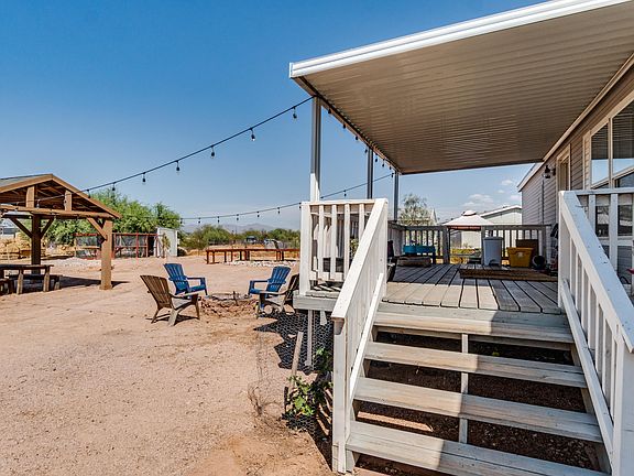 Welcome to spacious views and country living in the city! Gorgeous mountain views and amazing sunsets invite you to relax in the gazebo on over an acre of horse property. This move-in ready home is updated and modern with white cabinets and granite countertops, with breakfast bar and new appliances. Brand new plank floors and upgraded plush carpet throughout and decorator tile in the spacious master bathroom. Beautiful accent walls, decorator touches and large closets in all bedrooms. Separate guest house is modern and well-appointed with plank floor and a kitchenette including microwave, sink and stackable washer dryer. Keep cool with the duo of mini-split air conditioners. The bedroom has en suite bath with remodeled shower and walk in closet. Enjoy ranch life with horse corals, hitching post, , 4 partially covered stalls, pasture with sprinkler availability, BX 1 O tack room, a pond with hydroponic capabilities can grow huge garden vegetables with low water use. A poultry house will house your chickens and rooster for fresh eggs daily. A 1 OX 15 shed with electric installed is ready to convert into a workshop, she-shed, man-cave, craft room ... the possibilities are endless! Brand new OWNED solar panels will save $$$. Projected savings of 70% of the electric bills in the summer and 100% of the bills in the winter! Garage has 400V outlet for RV plug in.