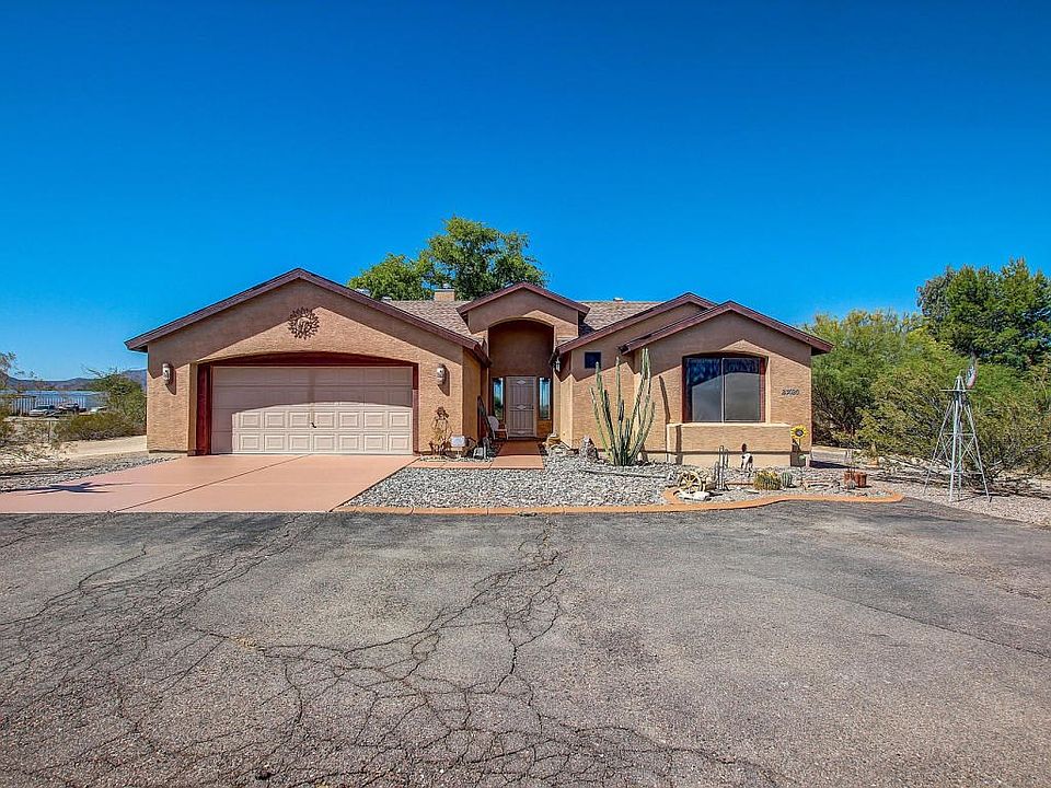 Great custom home in Buckeye! Features 3 beds, 2 baths, an open floor plan and plush carpets in all the right places. Get cozy in front of the living room fireplace. Imagine cooking family meals in a kitchen equipped with granite tile countertops, plenty of cabinets and a raised breakfast bar. Ceiling fans in all the bedrooms and the roomy master has its own bath with double sinks. Covered patio as well as shady trees in the backyard are perfect for entertaining. Horse property allows for plenty of space. Enjoy mountain views and endless blue skies. Don't miss out, call today!