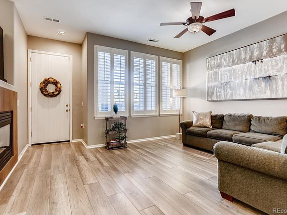 Beautifully updated Saddle Rock ground level condo with an open floor plan. There are many upgrades including new laminate wood flooring, gorgeous plantation shutters throughout, newer custom paint, spacious kitchen with stainless steel appliances, large remodeled hall bath, and a completely remodeled master suite with detailed coffered ceiling, large walk-in shower with custom tile, stylish barn door to the bathroom, new cabinets with granite counter top, new fixtures, and a custom closet organizer. Some other features include A/C, gas fireplace, and large oversized tandem 2 car garage with an additional storage area and work bench area, good sized covered front patio, nest thermostat, ring doorbell, and all appliances stay including washer & dryer. Right next to the wonderful community pool! Great location being in the Cherry Creek school district, and easy access to Southlands Mall, E-470, Arapahoe Rd, and much more! Move-In-Ready!