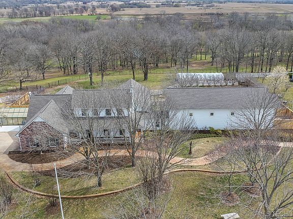 21 acre m/l Equestrian Estate. Private gated entrance. 3BDM/3 BTH home. Enjoy the Exercise studio overlooking the saltwater pool. Stall barn w/ vet room & wash stall, Indoor riding arena, multiple large paddocks for horse turnout, loafing sheds in each paddock. Pipe and Vinyl fencing, 2 whole house generators supporting the home and barns. 2 geothermal units. New roof on home, and on all outbuildings with shingles in 2023. 3 bay RV storage building. 1 car garage with additional space. 1 car garage with 2 stalls and runs. CONCRETE/blacktop driveway. Granite counter tops , Bamboo floors, mature trees, magnificent views! Additional land available. 2.5mi to Will Rogers Downs 7mi to Claremore Reginal airport 35mi to Tulsa