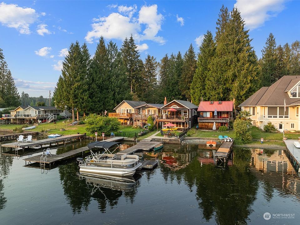 Vintage Lake Roesiger Cabin. Situated perfectly on the channel between both sides of the lake. Tie your boat to the floating dock & enjoy no wake waterfront, sandy & free from lily pads. Newly installed A/C. The antique stained glass eyebrow window in peak & electric fireplace invite a warm glow. Quaint doors slide on barn rails in bed & bath, mahogany atrium doors open to a trex deck. Hand scraped teak & slate flooring promise easy care. Kitchen island w/ granite counters & a full view of the lake. Loft offers extra storage or sleeping space. Downstairs hosts 1/2 bath & studio style room. Stack kayaks on the wood pad under deck & paddle boards on the side. Please be respectful of neighbors & park in the grass in front of this cabin!