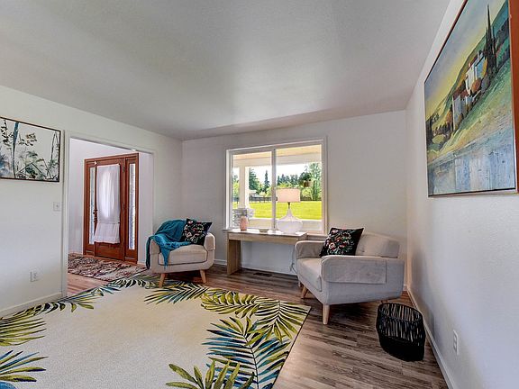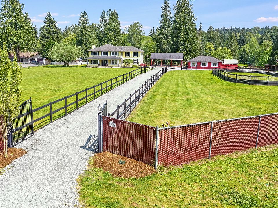 Heavenly Estate with private lakefront access. 5+ acres with barn, pastures, raised garden area, greenhouse, shop, rv space, garages, 3 carports, 2 homes all yours! Shelter in place & have the home of your dreams. Main house features 3 bedrooms, 2.5 baths, cottage is a 1 bedroom, 1 bath home. Buyer to confirm 3,400+ sq feet of living space. Minutes to I-5 but feels a world away. Please take the virtual tour & then arrange for a private, safe showing. This incredible property is not to be missed.