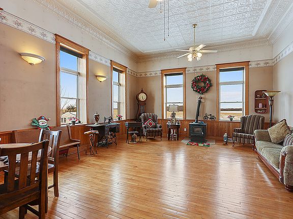 Tastefully renovated school house with a spectacular country setting!! Large main lvl master w/ full bath, updated galley kitchen w/ snack bar, WALK-IN pantry, ample aisle space, the list goes on!! *Large windows and high ceilings throughout fill this nearly 3400 sqft home with natural light. Icing on the cake is the 4+ car insulated garage!! Freestanding pellet stoves on 2 levels.