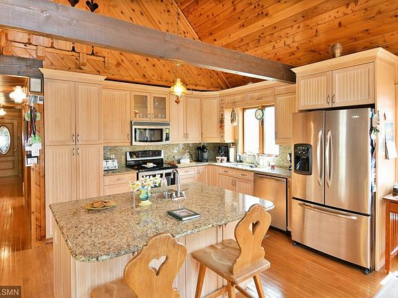 Rare opportunity to own a GORGEOUS Chalet-Style retreat that is situated on the shores of Upper Clam Lake (Elk Capital of WI) in the heart of the National Chequamegon Forest. This lake front property has been in the family since the time of build. This property is perfect for entertaining as it has plenty of sleeping space, storage, and room to expand. The unfinished upper level loft area of the outbuilding awaits your personal design touch. Not only is there an attached garage, a huge 36x40 outbuilding, but a spancrete garage located in the LL as well. This home possesses granite countertops, SS appliances, an upper level catwalk, and multiple lakeside walkout doors. This property boasts a timeless style and can be appreciated for years to come. Please be sure to check out the property & area features page as there are too many amenities and features that you don't want to miss to list!