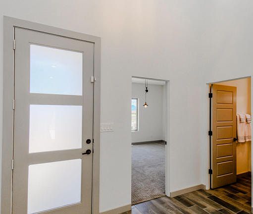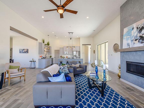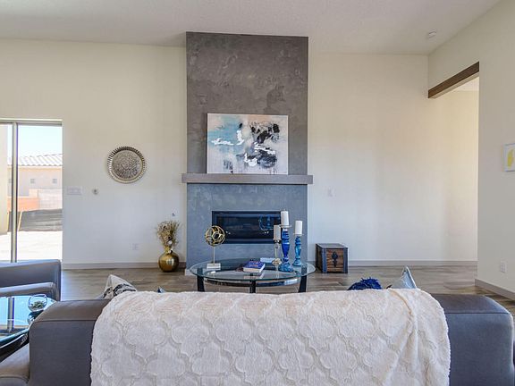 Stunning Contemporary style Fellowship Home located in an up and coming community of Rio Rancho surrounded by custom homes, on a large 1/2 acre lot. Home features 2,371sf with 4 bedrooms, 2.5 bathrooms and a 3-car garage! Modern industrial finishes & wood look tile throughout home! Spaciously designed kitchen hosting high end cabinetry with a modern gray finish, granite countertops, floating shelves, subway tile backsplash, stainless steel appliances, pantry and a large island with seating for 6! Beautiful living space with a custom gas fireplace with Venetian finish and an 8 x 9 pocket door that allows you to bring the outside in! Master suite w/ spa-like bath! Barn door leads you to the tranquil space w/ dual sinks, a large soaking tub, walk-in shower w/ glass enclosure & walk-in closet!