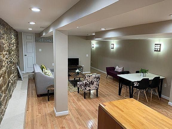 A recently renovated modern and spacious 850sqft English basement apartment with hardwood floors, recessed lights, 8ft ceilings, front and rear entrances, separate heating and cooling. Located in a quiet neighborhood in the heart of historic Bloomingdale. Close to metro, bus stops, Cafes, and restaurants as well as the Washington Hospital Center, Children's Hospital, Catholic University, Howard University. 2 bedrooms 1 bathroom Fully equipped kitchen Spacious and open living and dining area WASHER/DRYER in Apartment PRICE: $1,850/month AVAILABILITY: Immediately LEASE TERM: 12 months lease preferred UTILITIES: Tenant pays gas, electric, and cable/internet. Landlord pays water. PARKING: Street (will provide permit if zone permit is not available) PETS: Small pets with deposit. Furnished option: Yes, as pictured for additional fee.