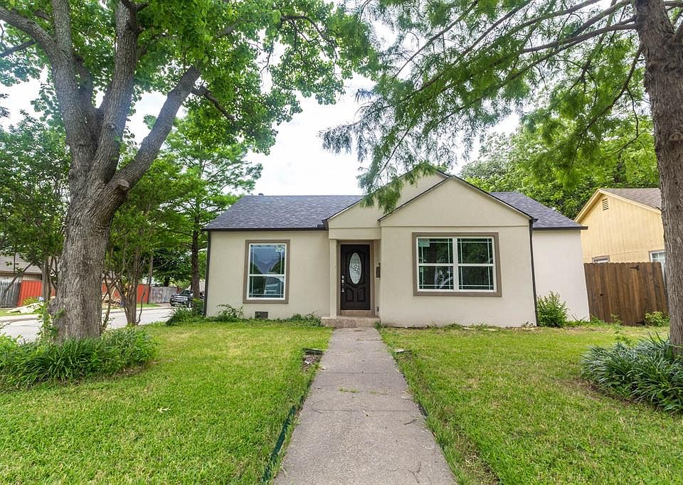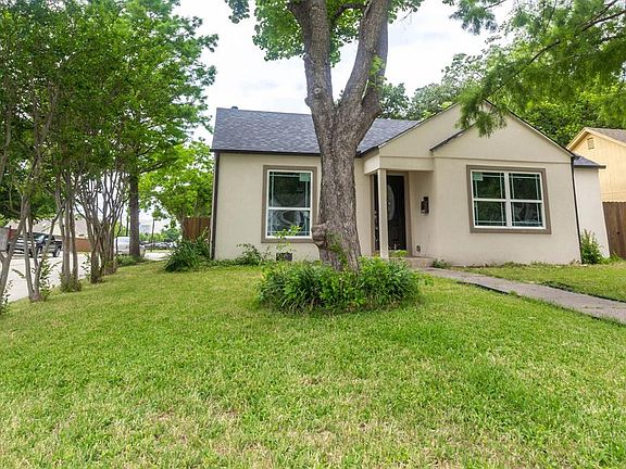 Home with Guest Quarters! Main home has 2 beds 1 bath & guest has 2 beds & 1 bath & not included in listing square footage. Charming main home has been updated inside & out and ready for move-in. Updated kitchen with granite counters, wood floors & stainless steel appliances, including refrigerator. Gas fireplace & new floors throughout. Fresh paint inside & outside, updated windows, & bathroom. Guest quarters has a living room with eat-in kitchen, 2 bedrooms and 1 full bath. New HVAC system, sits on a corner lot, side entrances to the backyard and carport parking. Large backyard and a covered area that can be a workspace. Conveniently located next to Love Field, Medical District, & I-35. Schedule a showing!