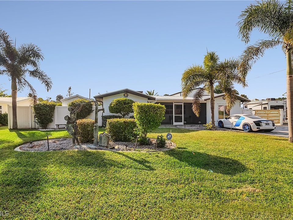 Welcome to Yacht Club Colony, this voluntary HOA has a low annual fee of $200 which includes and grants you access to a 7-acre riverfront park with a boat ramp and a covered pavilion. This property offers upgrades that support comfort, efficiency, and easy Florida living. The outdoor area is centered around a saltwater, heated pool with spa jets, creating a relaxing environment that is simple to maintain and ideal for everyday use or hosting. The lanai includes roll-down shades, providing additional privacy and sun protection so the space can be enjoyed throughout the day. The property is equipped with solar panels with a low monthly payment that is fully transferable, a standby generator, and a buried propane tank in the front yard. These features help reduce monthly expenses while ensuring dependable operation during storms or outages. Inside the home, a surround-sound system is installed throughout, adding convenience for entertainment, gatherings, and daily living. For boaters, the waterfront portion of the property is fully set up for immediate use. It features a 10,000-lb boat lift with a 35-foot canopy equipped with dock lights. Come see this home in paradise.