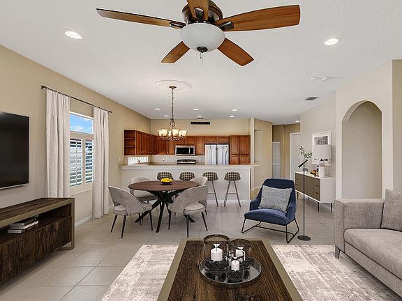 Hurry to this one! Come and live the ''Wellington Life''. Absolutely Beautiful 3/2/2 in Lakefield South zoned for Binks Elementary. This amazing home has a very open floor plan, Great size kitchen with a large snack bar that opens to the family room with a view of the Lake. NO CARPET in the home as its all tiled. All bedrooms have wood looking tile planks. Inside laundry room that leads out to the 2 car garage. There are no homes behind you which allows for plenty of privacy. Master bath has dual sinks, separate tub and remodeled shower, master bedroom has a large walk in closet. Home has a split floor plan with master on one side and 2 bedrooms on the other. The covered patio is great for entertaining and watch the awesome sunsets. Fenced yard and paver driveway.