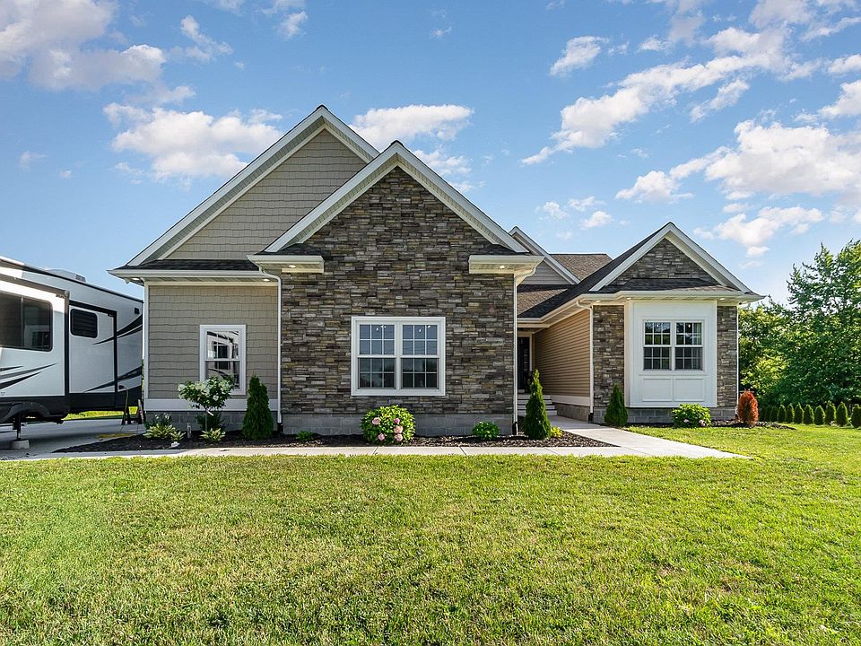 Ideally located in Frankenlust Twp, this sprawling ranch home built in 2021 offers nearly 2,500 sq ft! Nestled on almost 3 acres, this property features 3 bedrooms on the main floor with an additional 4th bed in the basement and 3.5 bathrooms. The oversized primary suite showcases a private bathroom complete with soaking tub and generously sized walk in tile shower. The large kitchen is the perfect space for entertaining with a spacious island and pantry. The open floor plan showcases vaulted ceilings in the main living room with a floor to ceiling stone fireplace surrounded by custom built ins. Other perks include main floor laundry, a 2.5 car attached heated and insulated garage and views of Bay Valley Golf Course! This stunning home is a great buy in a fantastic location!