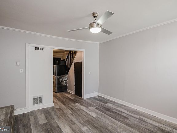Welcome to this exquisitely updated 2-bedroom, 1-bathroom Federal-style rowhome, nestled in the heart of Baltimore's vibrant Canton neighborhood. This home seamlessly blends classic architectural details with modern amenities, creating an inviting urban oasis. The main level is adorned with sleek laminated flooring and features a stylish living room complete with crown molding and a cooling ceiling fan. The chef's kitchen is equipped with top-of-the-line stainless steel appliances, electric cooking, and pristine granite countertops. Beyond functionality, this home offers a unique flexible space on the main level that can serve as a dining area, home office, or creative workspace, complete with a convenient stacked washer/dryer. Upstairs, the tranquility continues with two serene bedrooms, each outfitted with plush carpeting, ceiling fans, and elegant crown molding. The full bathroom is tastefully appointed, ensuring a peaceful retreat. Step outside to discover a private rear patio enclosed by a full masonry privacy fence—perfect for intimate gatherings or a quiet moment alone. Located within walking distance to Canton's array of shops, eateries, and entertainment options, this home scores high on both charm and convenience. Whether you're a first-time homebuyer or looking to invest, this property offers a rare blend of privacy, style, and access to a bustling community. Embrace a lifestyle of convenience and sophistication in this beautiful Canton home!