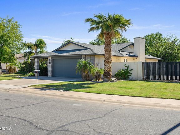Adorable and well cared for home on a large lot with no HOA. Light and bright with remodeled kitchen and baths and a neutral but homey color palatte. Gorgeous butcher block counters, farmhouse sink, stainless steel appliances. Lovely wood and tile floors. Primary bedroom includes a large walk-in closet. Mature shade trees in back with large covered patio make the backyard useable in all seasons. Garden planters have working watering system for flowers or herbs/veggies. Large RV gate with a huge concrete pad in a neighborhood where you can actually park an RV. Home is comfortable walking distance from the elementary school and close to the 202. Fantastic location, nearly equidistant from DT Chandler and DT Gilbert for fun restaurants/nightlife. Move-in ready.