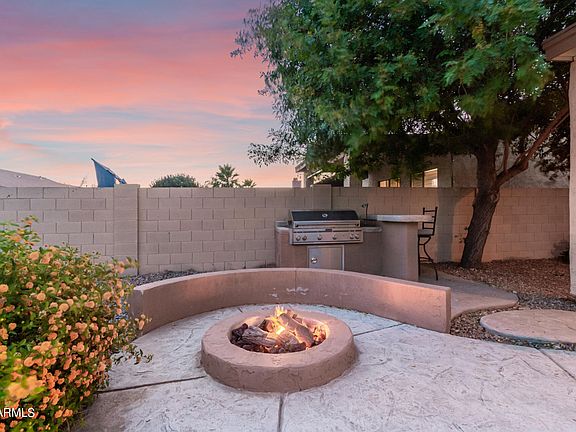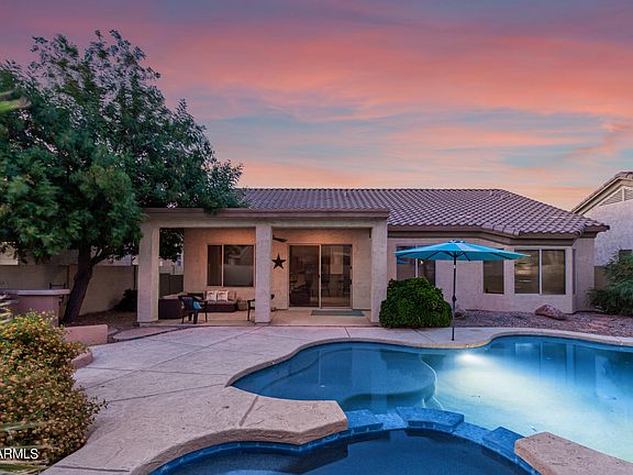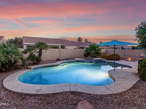 Welcome home! Located in Dobson Place and zoned for CTA Liberty, this beautiful residence boasts an inviting blend of modern aesthetics and functionality. 3 beds, 2 baths, a 2-car garage, with mature landscape. Discover a semi-open layout paired with bright living & dining areas, neutral palette, recessed lighting, tile flooring t/out, and 10ft flat ceilings. You'll love the kitchen offering SS appliances, staggered cabinetry, spacious counters, prep island, and a 2-tier island w/breakfast bar. Primary bedroom has a bay window and a spotless bathroom with dual sinks, separate tub/shower, & a walk-in closet. Moving to the outdoors, the backyard is nothing short of a private oasis! A covered patio, water feature, fire pit, built-in BBQ, and a sparkling pool/spa combo complete the picture.