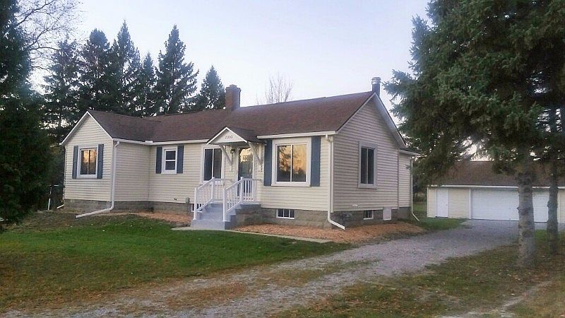 Remodeled TOP TO BOTTOM 2016. SUPER SHARP interior has open floor plan w/engineered wood wide plank flooring, porcelain tile in the all new bath & painted basement. Gorgeous white kitchen w/GRANITE counters, island & stainless steel appliances. New vinyl siding, windows, furnace, plumbing, electrical, central air, paint, fixtures, trim, doors & MUCH MORE! Gas log (freestanding) fireplace. Glass doors off the sunny kitchen lead to the new deck. Mature trees & large garage on an acre!