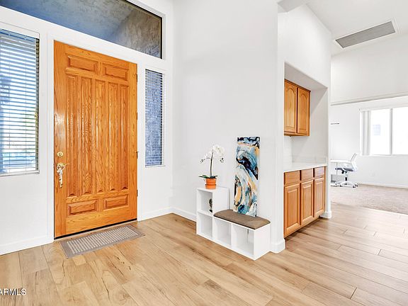 Nestled in the desirable Dobson Place subdivision in Chandler, AZ, this stunning single-story home boasts exceptional curb appeal and a spacious 3-car garage. Step inside to find a light and bright layout with soaring vaulted ceilings and elegant wood plank tile flooring. The heart of the home is the beautifully designed kitchen featuring quartz countertops, stainless steel appliances, and a gas cooktop, seamlessly opening to the inviting family room. A formal living and dining space adds a touch of sophistication, perfect for entertaining. The oversized primary bedroom offers a private retreat with its own exit to the backyard patio, along with an en-suite bathroom complete with double sinks, a soaking tub, a separate shower, and a large walk-in closet. This home is a rare gem combining style, comfort, and functionality in a prime location!