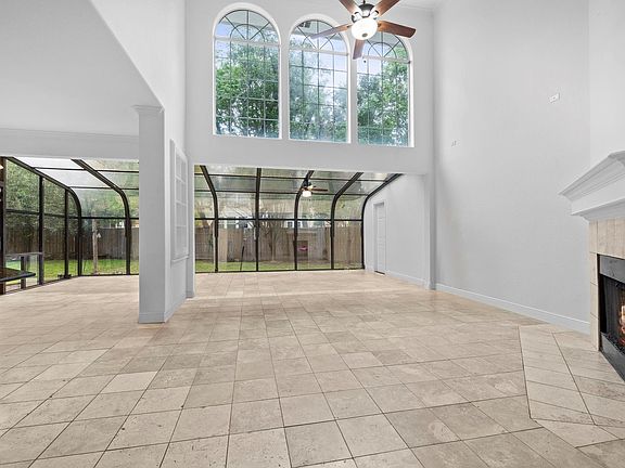 With a convenient location on a no-through street, this home blends peaceful, private suburban living with access to the outdoors. A neatly landscaped front yard accented with bright florals and beautiful stonework make up the exterior of the home. You are welcomed into the home with soaring ceilings that flood the home with natural light from all sides of the space, an open layout, and a home office that is tucked just off of the entryway. Features including double-height ceilings, an open catwalk above, and a sunroom that stretches across the back wall add to the expansiveness of the space. The sunroom is outfitted with tinted glass and custom shades for additional comfort, while providing a continuous view of the large private backyard across the entire back of the home. The kitchen features granite countertops, stainless steel appliances, and natural stone travertine floors. With plenty of workspace, cabinet space, and a walk-in pantry, it provides a functional space for daily entertaining. The downstairs owner's suite features a roomy ensuite bathroom that includes dual vanities, granite countertops, a glass-encased walk-in shower, and a separate oversized soaking tub. Upstairs, the ~250 SF flex room allows you to dream up the perfect playroom or media room. 3 additional bedrooms, including a secondary bedroom with a private bath and walk-in closet, fill out the second floor. Located in Leander ISD. Walk or bike to Elizabeth Milburn Community Park to enjoy access to the community swimming pool, multiple sports courts, a playground, a picnic area with barbecue pits, and a rock climbing wall. Plenty of shopping, dining, and entertainment options are available with Lakeline Mall, Alamo Drafthouse, and access to high-speed 183 Toll Roads within 4 miles and Downtown Austin within 22 miles.