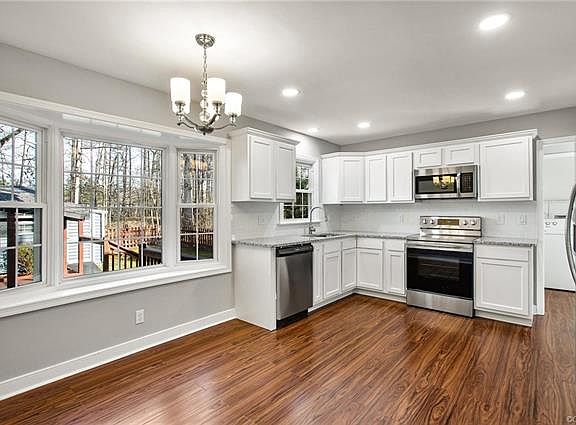 This gorgeous colonial home features a lovely landscaped front and rear yard. Entering the front door, the formal living room with French doors and hardwood floors is to your left. The dining room with hardwood floors, chandelier and entry to kitchen is to your right. The eat-in kitchen with bay window has been completely updated with new cabinets, granite counter tops and stainless-steel appliances. The family room with new carpet has a brick fireplace and access to the screened in porch and deck. The owners suite is truly a retreat with attached bath with double bowl vanity and walk-in closet. Three additional good-size bedrooms and an updated hall bath complete the second floor. There is also walk-up access to the attic with room for storage. The fenced backyard is an oasis with multilevel decking, detached storage shed with electric, fire pit area and attached storage shed. This home has new carpet, newer windows, plantation shutters, refinished hardwood floors and new laminate floors. It is freshly painted inside and ready for new owners. Lifetime warranty on siding and windows!