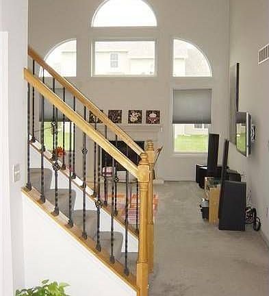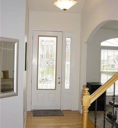 Why wait to build when you can enjoy this dramatic 4 yr old 1.5 story loaded with options? ALL APPLIANCES STAY. Brick front elevation w/dramatic 8 ft leaded glass door welcomes you. Hardwood floors warm the entry foyer; to the left, there's a formal dining room. Ahead, a wall of windows flank the gas fireplace in the two story greatroom. Wood and wrought iron spindles compliment the stairs. The expanded loft overlooks the greatroom & accomodates a full size pool table. Double doors lead to the main floor master suite, with a custom arched window, coffered ceiling and ceiling fan, The adjoining master bath features a marble massage jetted tub and a custom marble shower with 5 spray heads. Custom lighting and can lights throughout. Kitchen has 42 inch upgraded cabinetry, GE Profile and Monogram Stainless Steel appliances, including a wine fridge. Box bay in breakfast rm. House is prewired for a 7.1 Surround sound, outdoor speakers and an alarm system. Custom landscape stone & lighting.