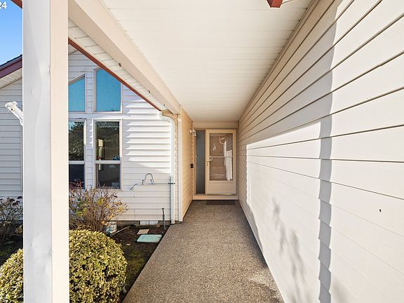 Discover comfort in this ideal one-level 2-bed, 2-bath sanctuary offering 1352 sq.ft. of beautifully designed space. Nestled in the peaceful 55 + Summerplace community, this home is the perfect blend of comfort and elegance. Interior highlights start with the light-filled living room with vaulted ceilings, a gas fireplace insert and laminate floors, creating a warm and inviting atmosphere. Sliding doors from the dining and kitchen area lead to a large covered patio. There is new interior paint and new carpet! The kitchen is well-appointed with stainless steel appliances, including a fridge, microwave, and a free standing range with four-burner gas cooktop. There is a bonus central island for added counter space with room for two barstools. The primary bedroom suite includes a walk-in closet and shower. The second bedroom is a versatile space, featuring a built-in Murphy bed and a dedicated desk area for study, crafts, or hobbies. The hall bath includes an updated walk-in shower. Enjoy the benefits of a fully fenced backyard, with custom 7-foot fencing in the rear for added privacy. Additional features include a newer concrete flat driveway and built-in cabinets in the garage. Summerplace is a premier 55+ community offering a clubhouse, pool, tennis, exercise rooms, library, and a variety of classes and activities. This home is the perfect blend of comfort and convenience, offering a low-maintenance lifestyle in a vibrant community. [Home Energy Score = 4. HES Report at https://rpt.greenbuildingregistry.com/hes/OR10234769]