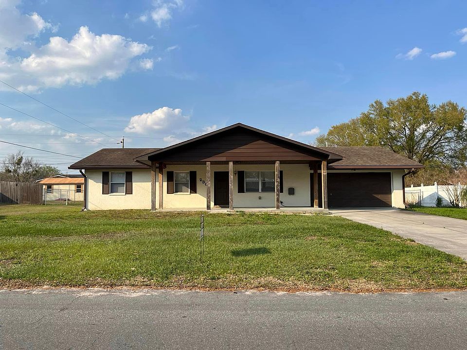3 Bedroom 2 bath house with front and rear porches. Two car garage with remote and keypad entry. Extra large indoor laundry room. Recent remodel including real wood and tile floors, appliances, window treatments, interior doors, light fixtures and LED lighting, ceiling fans ,electrical outlets, bathroom vanities, faucets, and fresh paint throughout. Air conditioning system, septic system, hot water heater, toilets, garbage disposal and appliances have been recently replaced and make the home more energy efficient which lowers utility bill cost. Appliances included with rental are refrigerator, stove/oven, dishwasher, garbage disposal, and hot water heater. A previous house addition added a front porch and a glass/screened rear porch with a covered, non-enclosed area to grill/cook. Located very close to the local Lakeside Village Mall, movie theater, and restaurants, and South Florida Ave. Only a few minute drive to Dixieland, the active downtown of Lakeland. Also located near the Polk Parkway which provides easy access to most of Lakeland, and I4. Renter is responsible for utilities (Water/Electric/cable/internet/etc.). Owner provides regular insect control. Pets are allowed but have a nominal monthly fee. Ask for further details. Renter can use the porch of the rear shop, but will not have access inside the shop, which the owner is using as storage. Renter subleasing is not allowed.