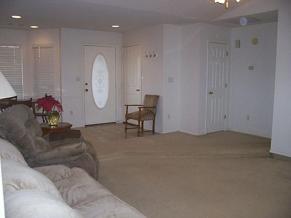 Split floor plan, kitchen has cathedral ceiling, gas range, breakfast bar, can lighting, sunken living room with a vent less gas log fireplace.
