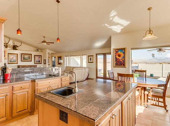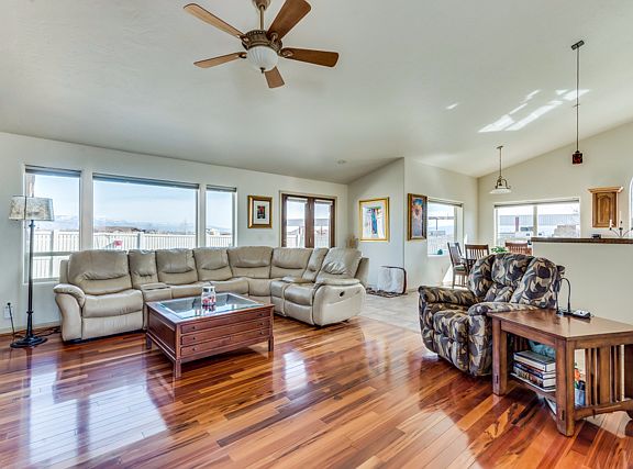 This home is lovely and comfortable with beautiful vistas. The ICF (insulating concrete forms) construction helps with reducing heating and cooling costs. The open floor plan allows for good traffic flow and the vaulted ceilings further expand the space. If you enjoy cooking and/or entertaining, this gourmet kitchen is well appointed with new stainless appliances, a prep-sink in the large island, ample work space, and a walk-in pantry. The oversized three car garage and two sheds provide flexible storage and workspace. Horses and other animals are allowed on the almost two acre property.