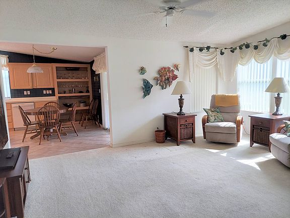This 1998 Palm Harbor home includes 3 beds, 2 baths and an impressive 1708 square feet of living space with gorgeous views of the 11th hole on the Big Cypress Championship Golf Course from the rear, window-enclosed lanai. In this open, split plan you'll find carpet throughout the living areas and ceramic tile in the wet areas, thermopane windows, ceiling fans, horizon windows and coffer ceilings, with tape and textured walls throughout. The kitchen has an eat-in nook, built-in shelves, new refrigerator and dishwasher, Jen-Air cook top with accessories and a wall range, plus plenty of counter and cabinet space. The AC-capable lanai has new acrylic windows and custom blinds. The master suite offers his and her WICs with a jacuzzi tub, walk-in shower and full linen closet. This home is being sold partially furnished with the golf cart.