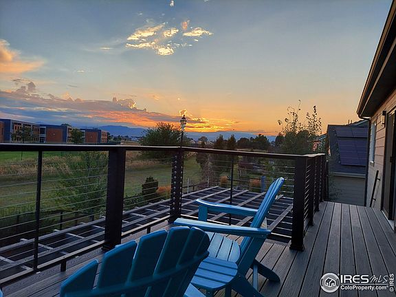 Huge price reduction!!! Bring your best offer now! Amazing views, loaded with upgrades inside and out, this 4 bedroom home lives like new! A great price for this sought after location in SE Fort Collins. Backing to open space, the professionally landscaped backyard includes outdoor kitchen with bar and mini-fridge, sunken firepit, sunken tramp and clean, contemporary design. Upper deck runs the length of the home bringing the outside in with front range views and plenty of sunshine. 9kW Solar PV system is included for super-affordable energy costs. Dual high efficiency furnaces and a/c units for full control over your utility usage. All SS appliances included, some furnishings available as well. We are ready for a quick close, call for your showing today! Open house Sat, 11-2.